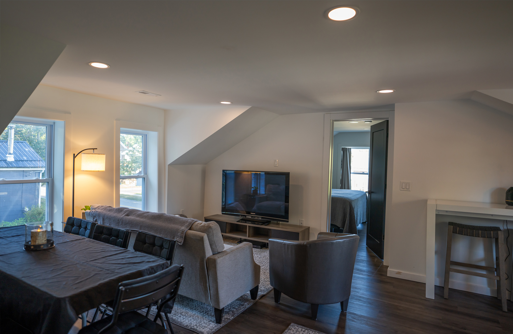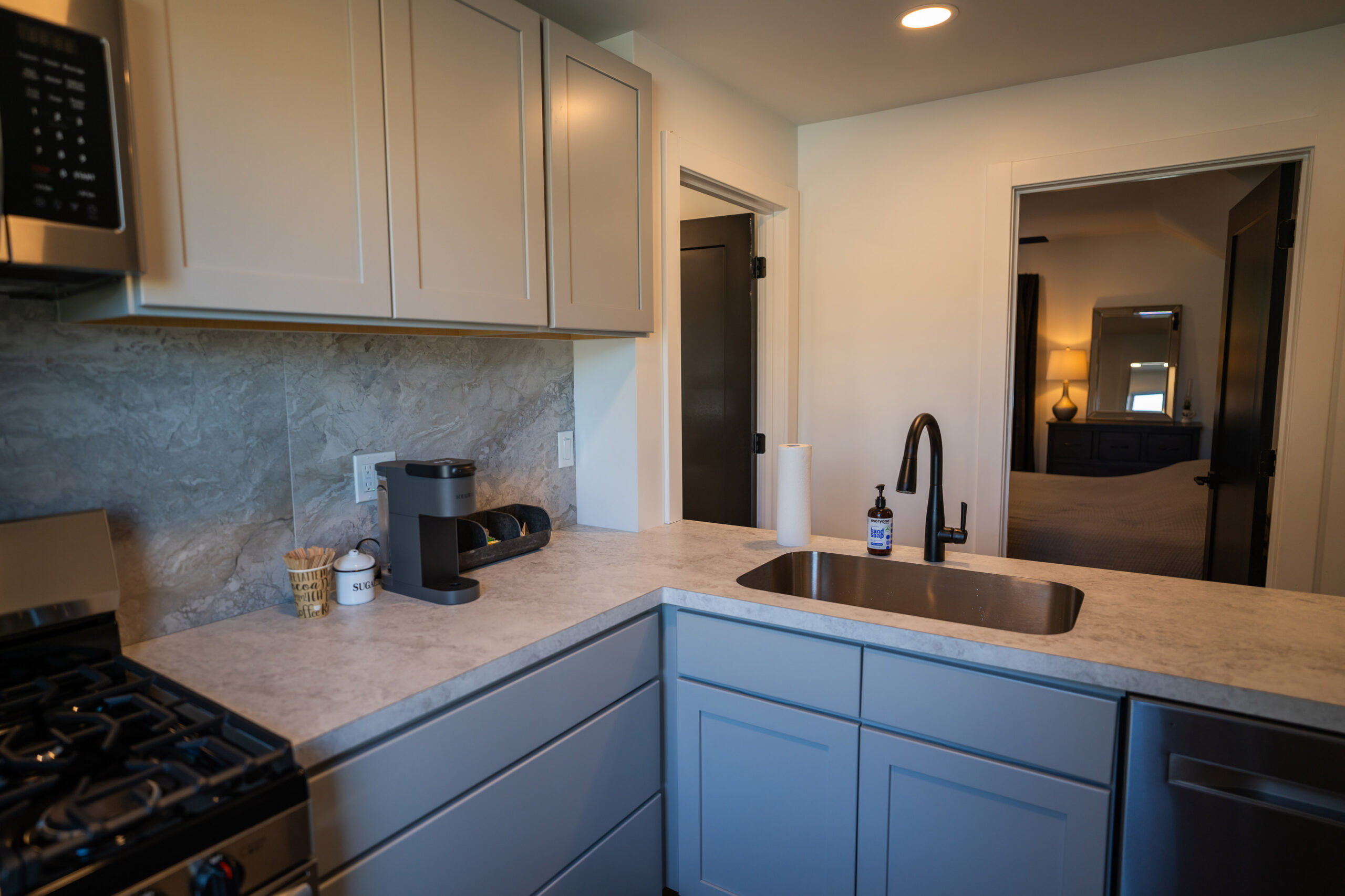 This brand new luxurious getaway space is perfect for your group’s Spa Day across the street at Escential Care Spa or families coming in from out of town. Our newest VRBO will sleep 6-8 people, have a kitchen, 2 bedrooms, 2 bathrooms and lounge area for perfect staycation or getaway spot. Located in quaint Alden, NY, you’re minutes walking distance to local shops, cafes, and more.